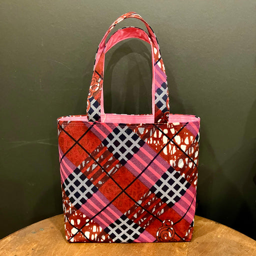 ちょうどよいサイズ感のバッグで学校や会社のお供にぴったりです。お弁当や水筒などを持ち運ぶのにも便利♪マチもあり、底には芯が入っているので使いやすいデザイン。裏地まで鮮やかで、みえないところもおしゃれです。 ◆原材料:綿100% ◆サイズ:幅23~25cm x 高さ19~22cm x マチ 5~...