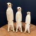 ナチュラルな白木の風合いを活かしたミーアキャットの木彫り置物です。しっぽで支えて太陽の方を向いて立つ様子がうまく表現されていてとてもキュート。手作りだから表妙もひとつひとつ異なります。素朴な愛らしさでお部屋のアクセントにぴったりです。