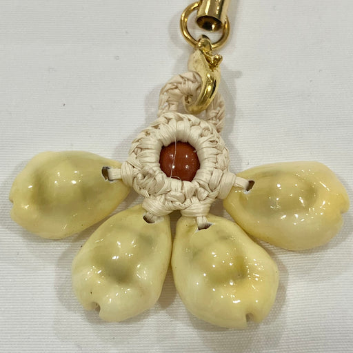 カラフルな卵部分はカーネリアンにペイントを施し花びらのように子安貝がついたかわいいキーホルダーです。金属のリングと卵をつなぐ部分は、ビーズをあしらっています。カーネリアンの石言葉は「成功、勝利、勇気」。古くから「幸運を呼ぶ石」と呼ばれお守りとされてきました。子安貝は「繁栄、富」を象徴するまさに...