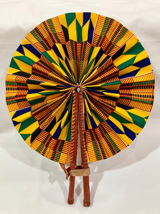 ケンテとはガーナの伝統的な織物です。 こちらの布はケンテ模様をモチーフにしたコットンプリント布です。プリント布を用いて、うちわを作りました。 幾何学や線が特徴的なケンテは、かつて存在したアシャンティ王国の王族のための神聖な衣装として作られたのが始まりです。その特徴は鮮やかな色彩と芸術的な模様で...