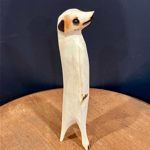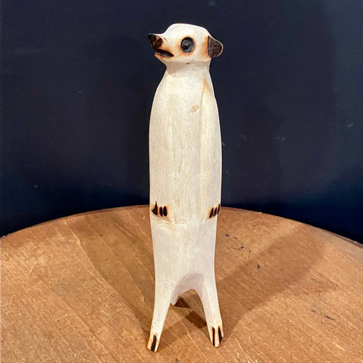 ナチュラルな白木の風合いを活かしたミーアキャットの木彫り置物です。しっぽで支えて太陽の方を向いて立つ様子がうまく表現されていてとてもキュート。手作りだから表妙もひとつひとつ異なります。素朴な愛らしさでお部屋のアクセントにぴったりです。 ※最後の写真は、左から”ミーアキャット・大/中/小”です。...
